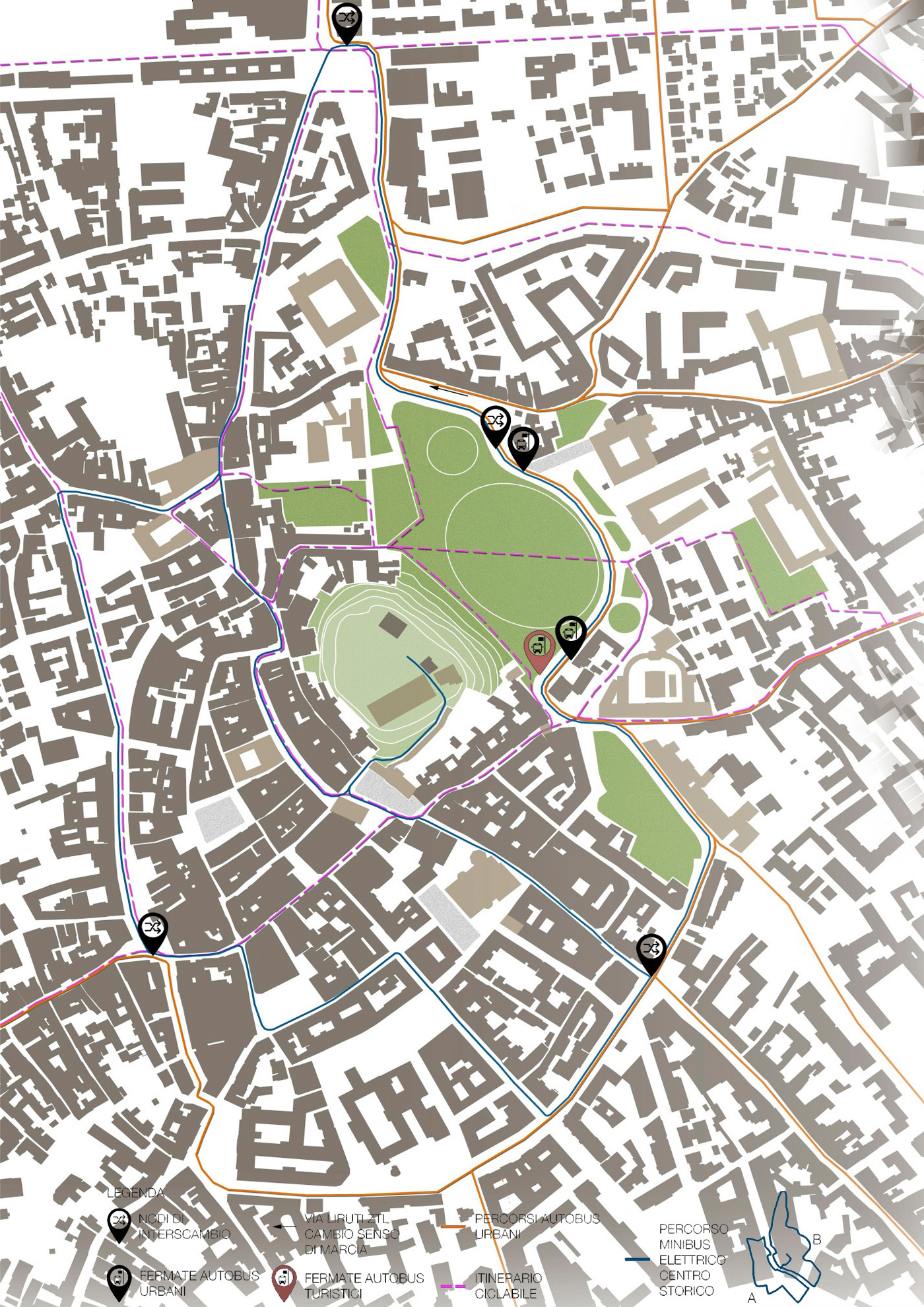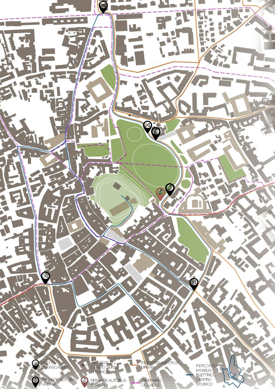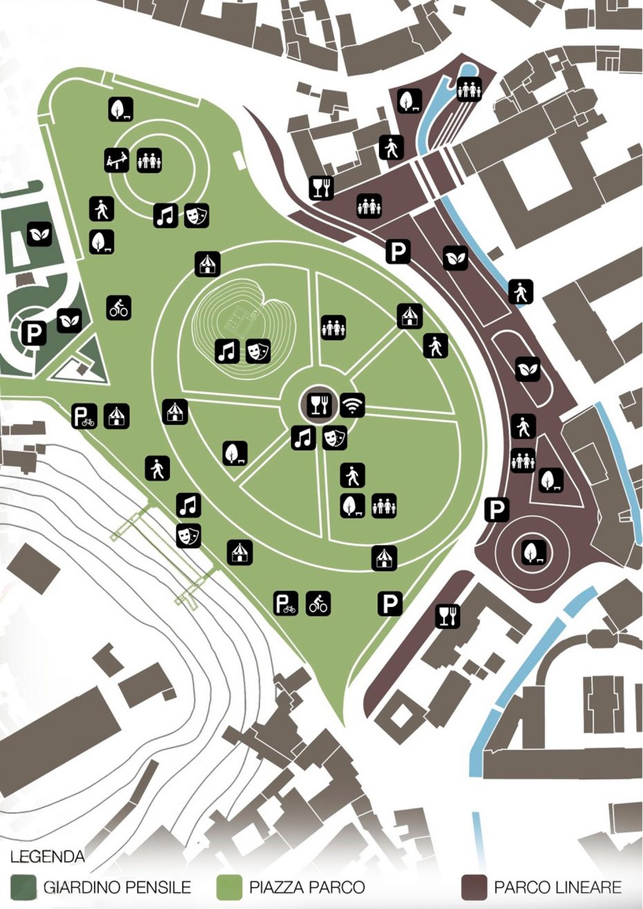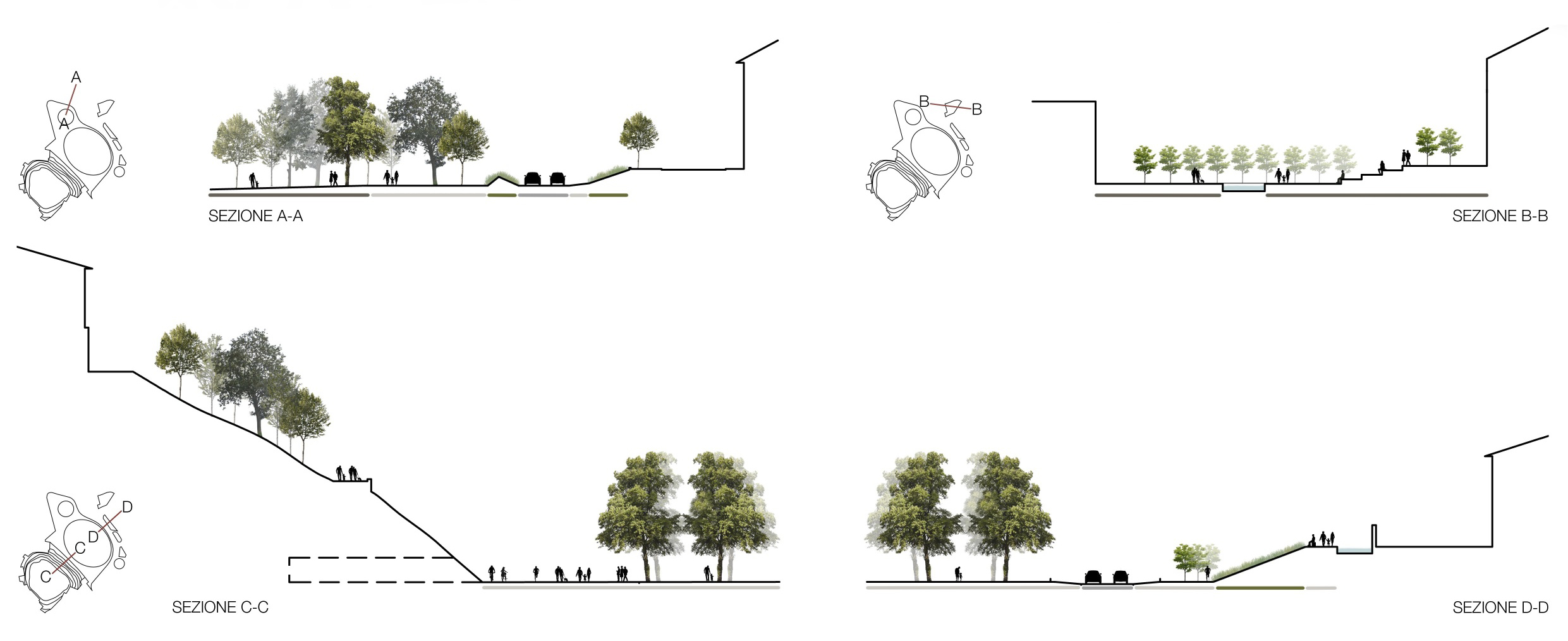 L’identità è data dall’insieme dei caratteri che individuano una persona, una cosa o un luogo, distinguendolo da altri. Un carattere può essere interpretato come un segno o un tracciato a cui si attribuisce un significato particolare. Questa riflessione ha dato il via all’analisi, innanzitutto storica, del sito oggetto di concorso. Lo sviluppo del progetto, quindi, si è basato sulla ricerca dei segni, dei percorsi, dei limiti delle proprietà, delle antiche consuetudini, che raccontassero gli usi consolidati nel tempo di questo specifico brano di città. Gli spazi e i luoghi percepiti sono forme signficanti, non diverse da altre forme espressive culturali. Essi sono il risultato dell’intreccio e della sedimentazione di elementi variamente plasmati e assestati nel corso del tempo. Per cogliere tale senso, i luoghi sono stati studiati come un insieme organico, in modo tale da poter proporre trasformazioni consapevoli. Il senso dei luoghi dipende dai legami di vario genere ed intensità che nascono, in primo luogo, dalle relazioni sia individuali che collettive. Gli spazi ed i soggetti, quindi, si definiscono reciprocamente.
