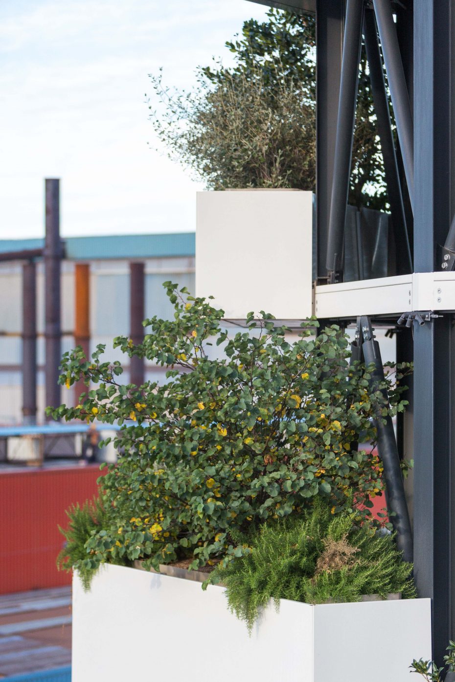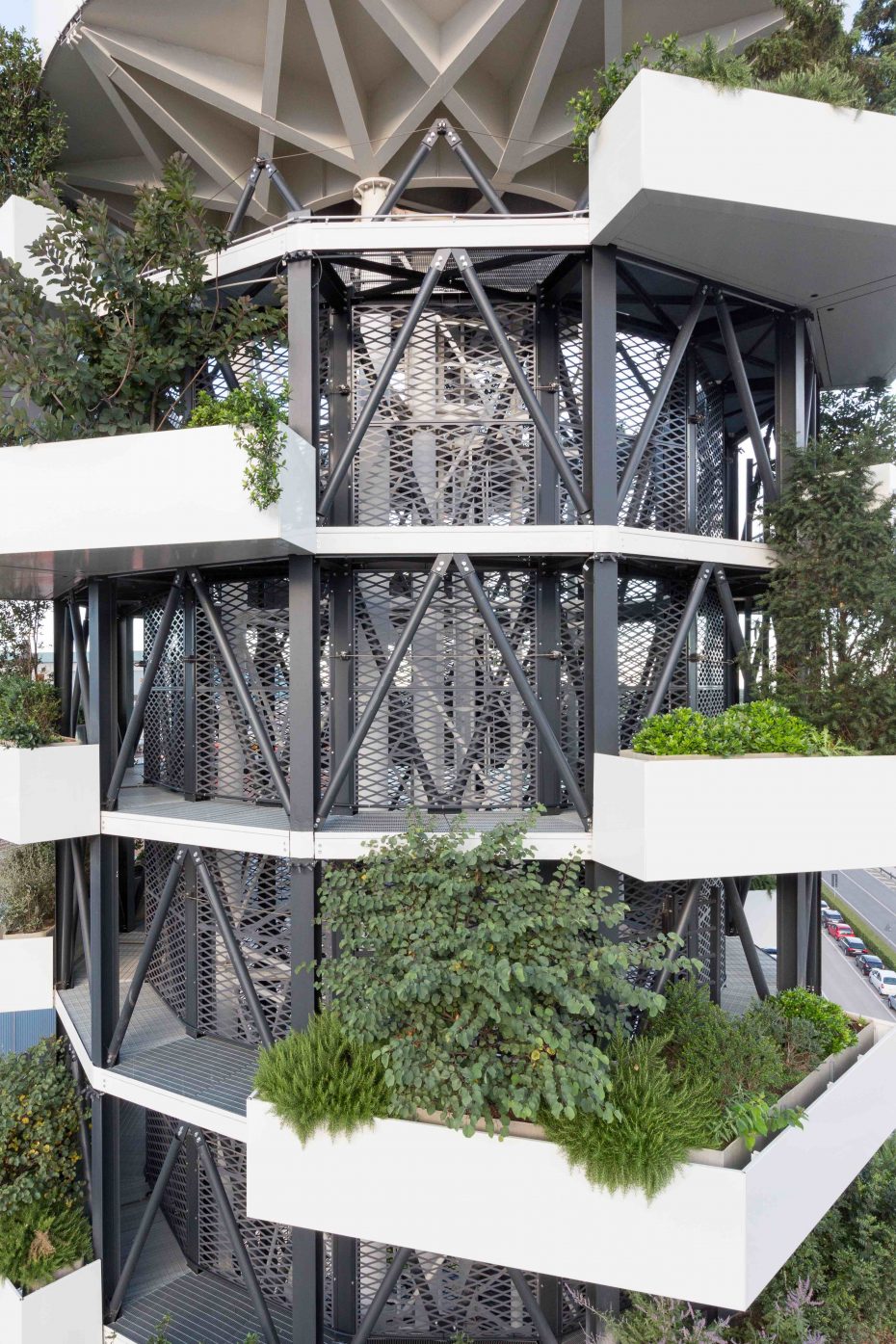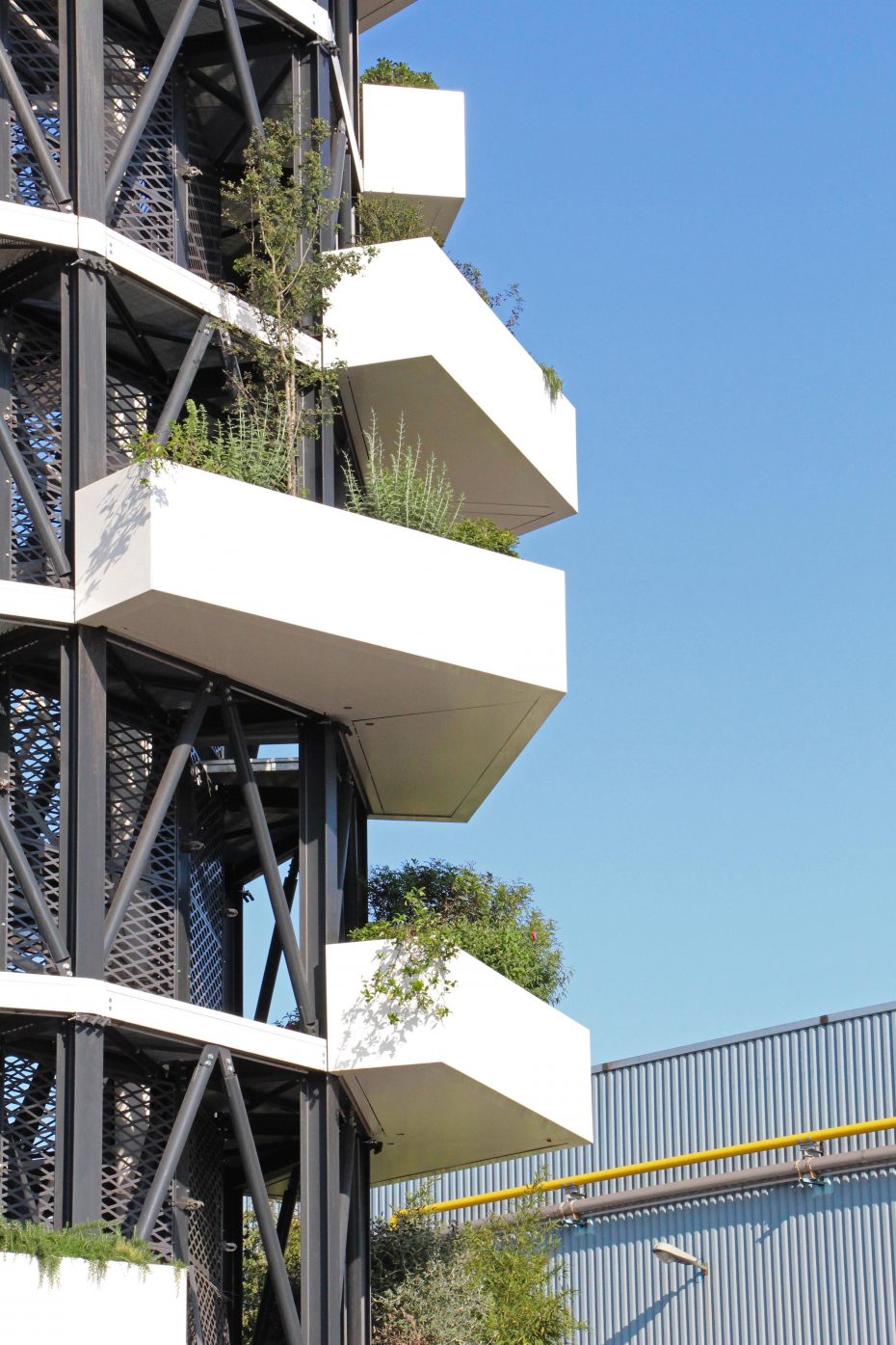La “Torre ABS” è un progetto per la riqualificazione architettonica della torre piezometrica situata entro il comprensorio delle “Acciaierie Bertoli Safau S.p.a.” e si ispira ai principi fondanti dello Studio Archimeccanica. Essa, infatti, esplicita una sintesi formale tra architettura e natura, con l’obiettivo di raggiungere un equilibrio dinamico tra geometria e meccanica.  Alta 36 metri e con un diametro di 10 metri è composta da una struttura modulare in acciaio. Ogni modulo è dotato di una vasca aggettante a verde pensile. La combinazione di questi, caratterizzata da traslazioni  e rotazioni, determina il volume architettonico. La componente vegetale è costituita da piante caratterizzate da un elevata rusticità, crescita compatta,moderate esigenze idriche, molte sempre verdi,  specie eminentemente ornamentali, ma anche specie che ritroviamo abitualmente nelle nostre campagne in grado perciò di attirare piccola fauna locale (insetti\fiori, bacche\uccelli). “Torre Abs”, pur mantenendo la funzione originale, assume un  nuovo valore simbolico come segno sul territorio (landmark) e come servizio all’ecosistema (assorbimento 1 tonn\anno CO2).